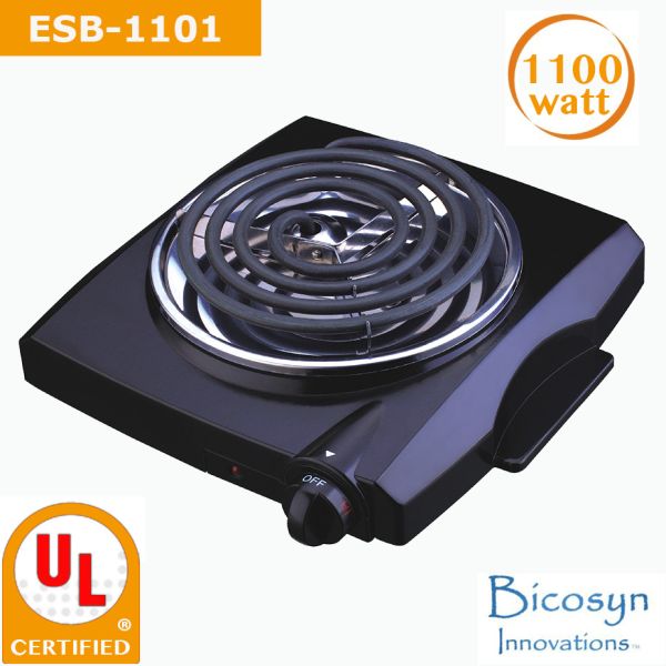 ESB-1101 1100 Watt low price Compact Single Buffet Burner Electric Hot Plate, Black, UL approved, Back to school item Images |